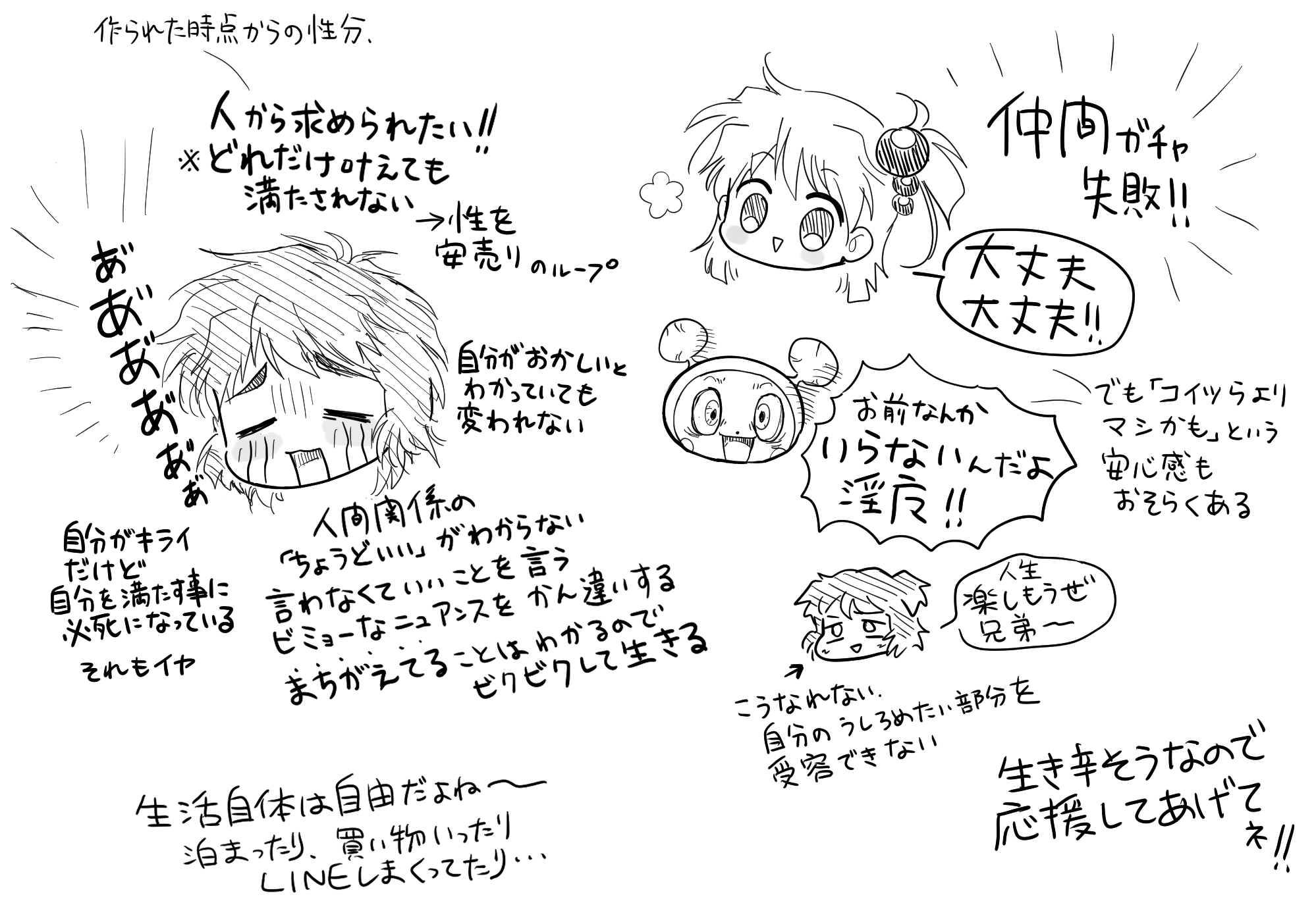 どのキャラも自分ではなかなかチョイスしないキャラだったので、描く機会があって楽しかったです!!語りを書くのも楽しかった!🫶