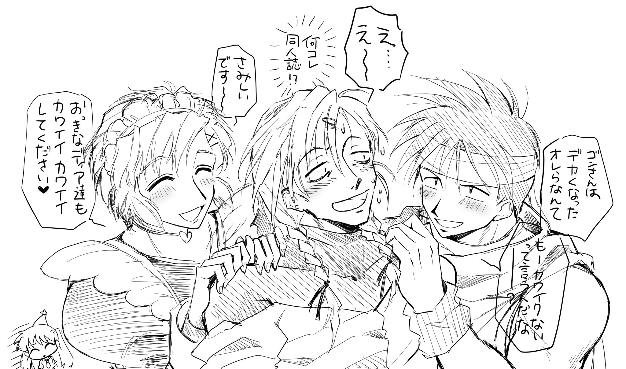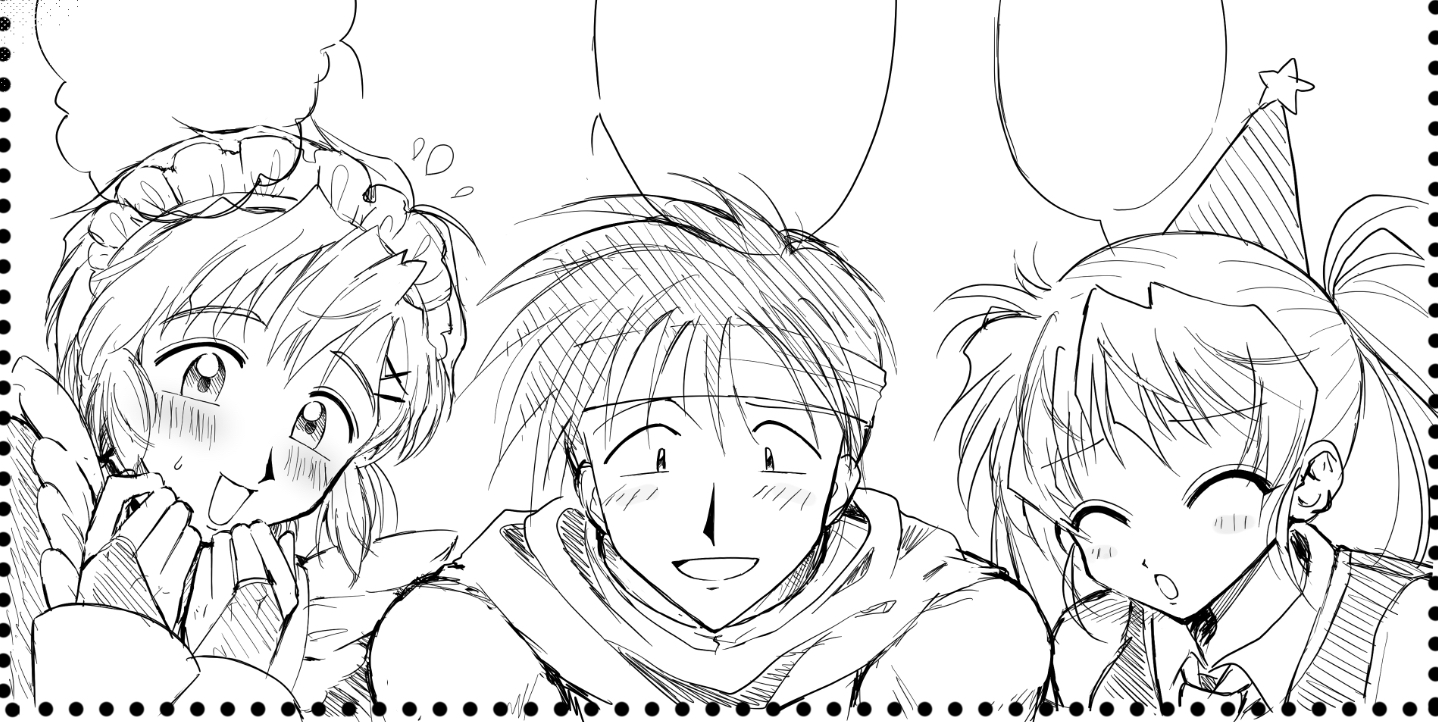 髪の毛先の表現、左右非対称な前髪とか、輪郭、顔のバランス等にかなり90年代特有のクセがある絵柄だとは思うので、人様に描いていただく機会があると「描きにくくないかな…困らせてないかな…」とチラチラマンになったりもしますが、描きやすいように解釈していただければ幸い…!🫶
