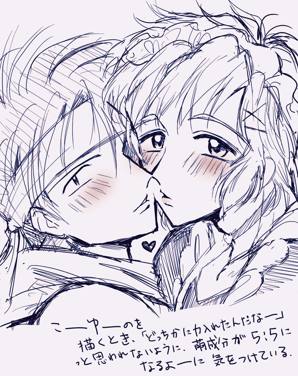 ただただ萌えな絵を描きたくて…なラフ。ちゅーしちゃいそうな距離感💕