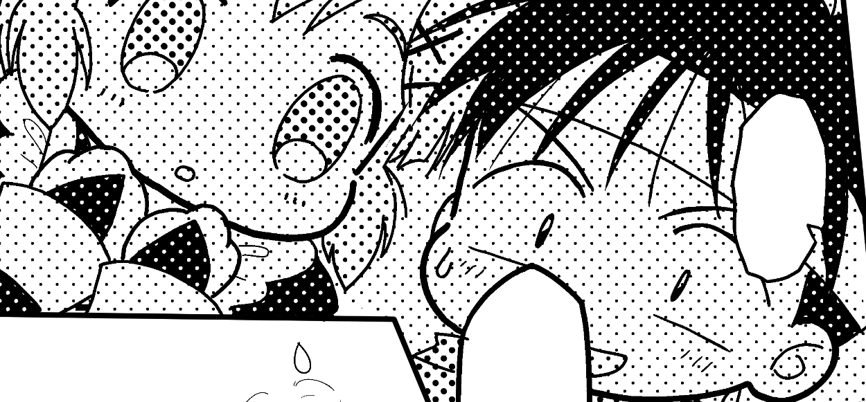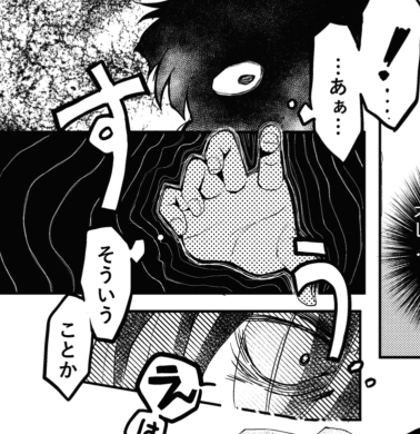 ここら辺のコマの配置とか、ちょうどいい感じがするので自分でも気に入ってます。読みやすい気がする。