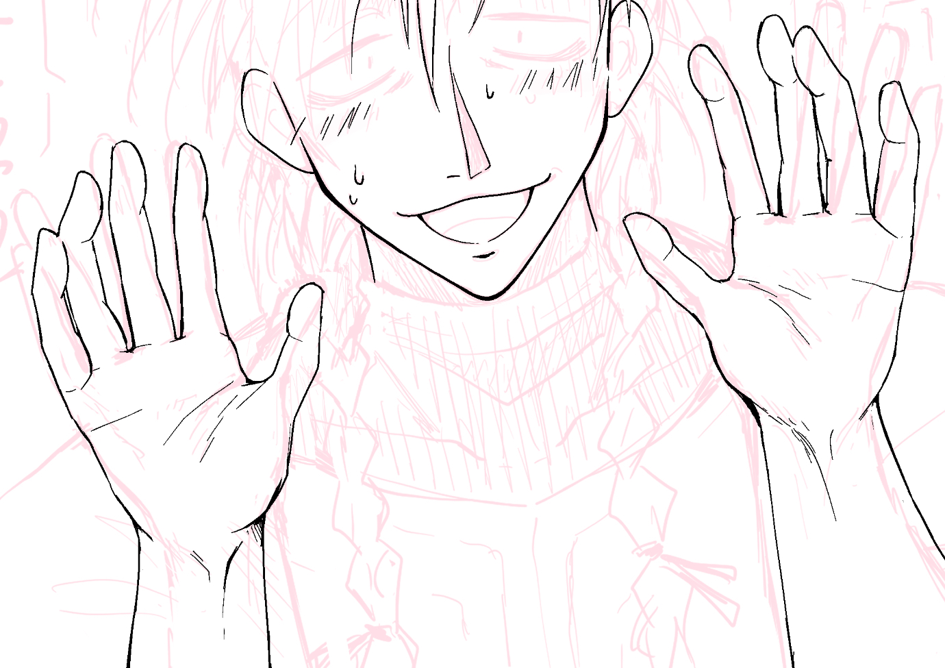 ペン入れ(線画)する時に線を迷いたくないので、ラフ→下書きを2、3回描き直して限りなく完成形に近づけておくのですが、こういう描き方をしてるから超遅筆なんだろうなあ…と思いつつも変えられない。マジで1コマ1コマこれをやってるから終わらないんだよな…わかってるんだ…!!!