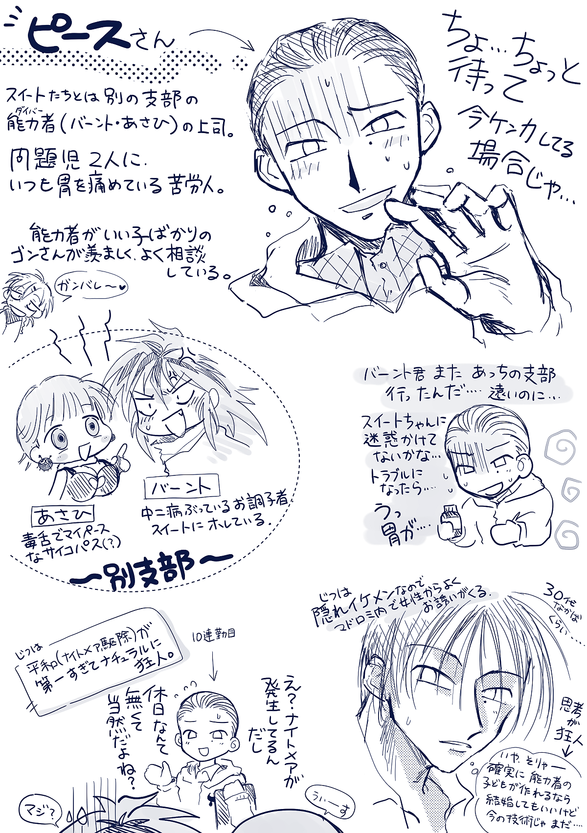 私のお気に入り、ピースさん。こういうthe脇役って感じのキャラを漫画に登場させるのが楽しみでしょうがない…。2026年はそこまで到達するといいな!!