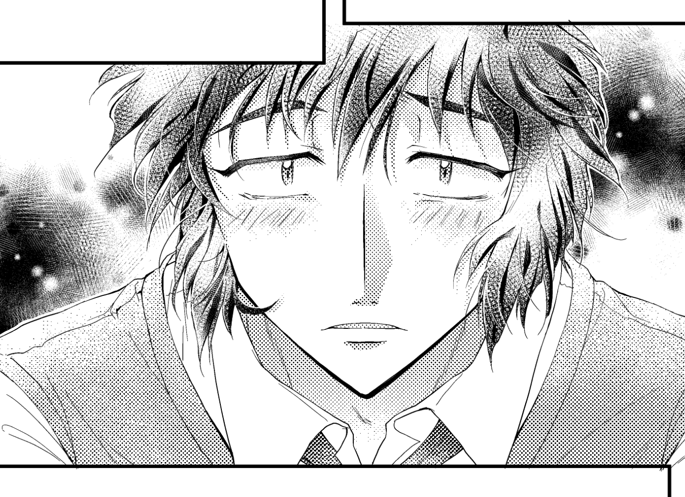 私のイメージですが、少女漫画って、他の漫画よりも「画面ギリギリ(断ち切り)まで使う」「人物を大きく配置、コマブチ抜く」「変則ゴマ多め」な印象が強いです。見せ所である瞳や髪を大きく描くためや、トキメキ・エモさの演出かなと思ってますが…とにかく空間の使い方に、おおらかさや自由度があるなという気が。
