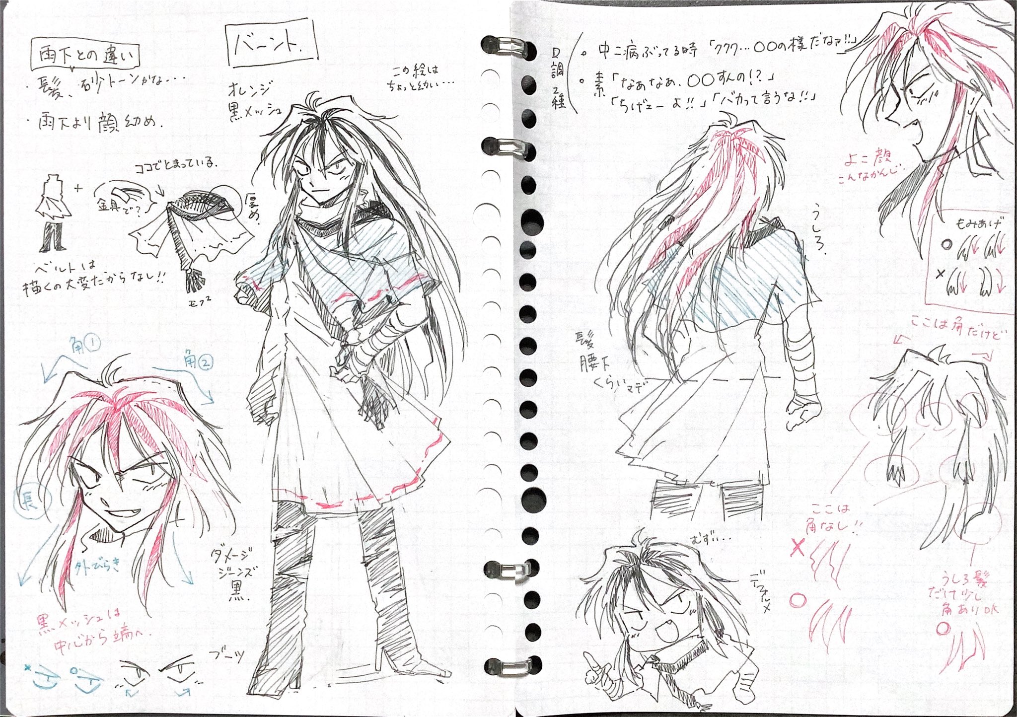 バーントの服装はもうちょっと厨二っぽくしたかったのですが(ベルトいっぱいつけるとか)、漫画でいっぱい描くことを想定してできるだけあっさり目にしてあります…お洒落は隠れてやってくれバーント(笑)