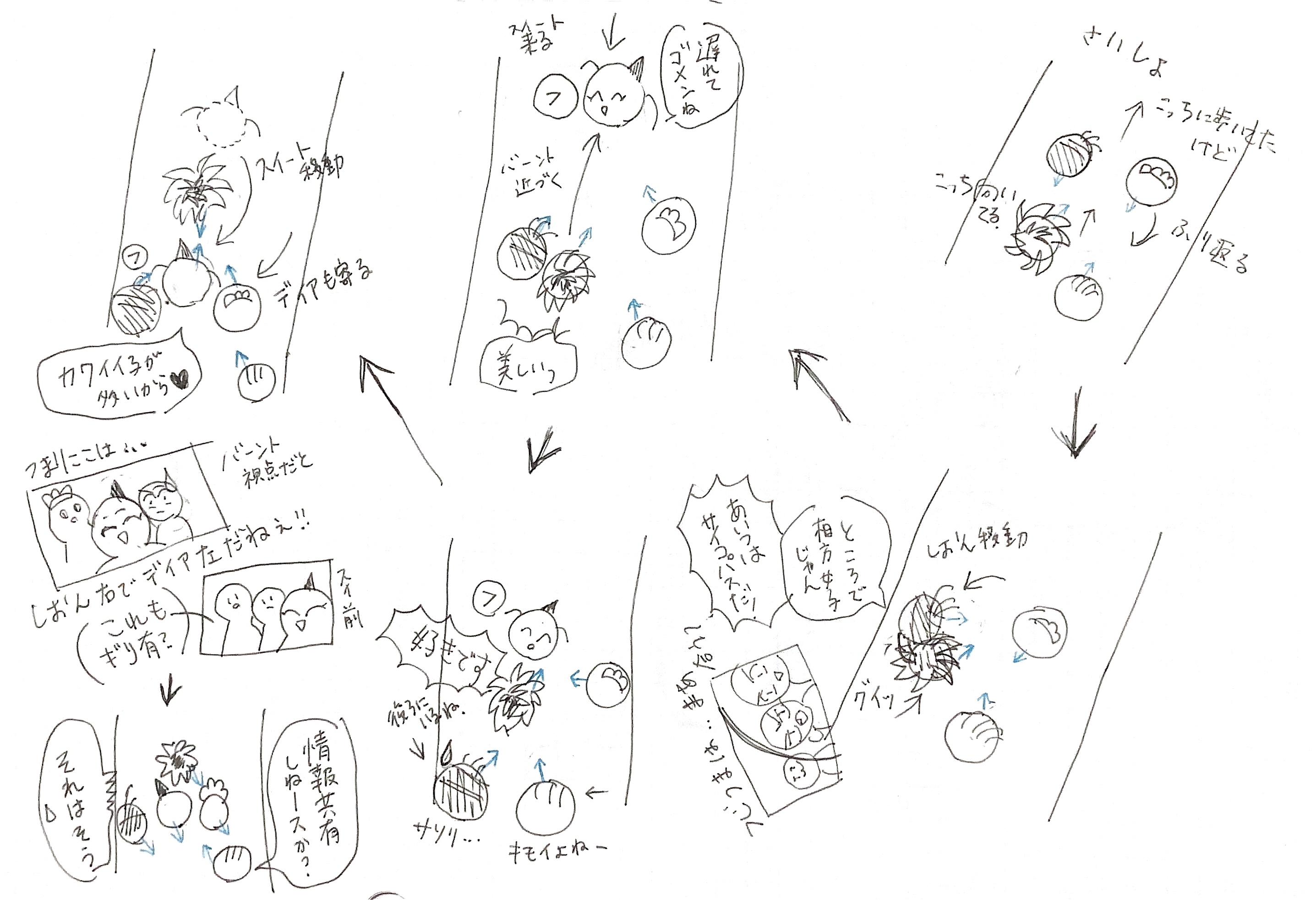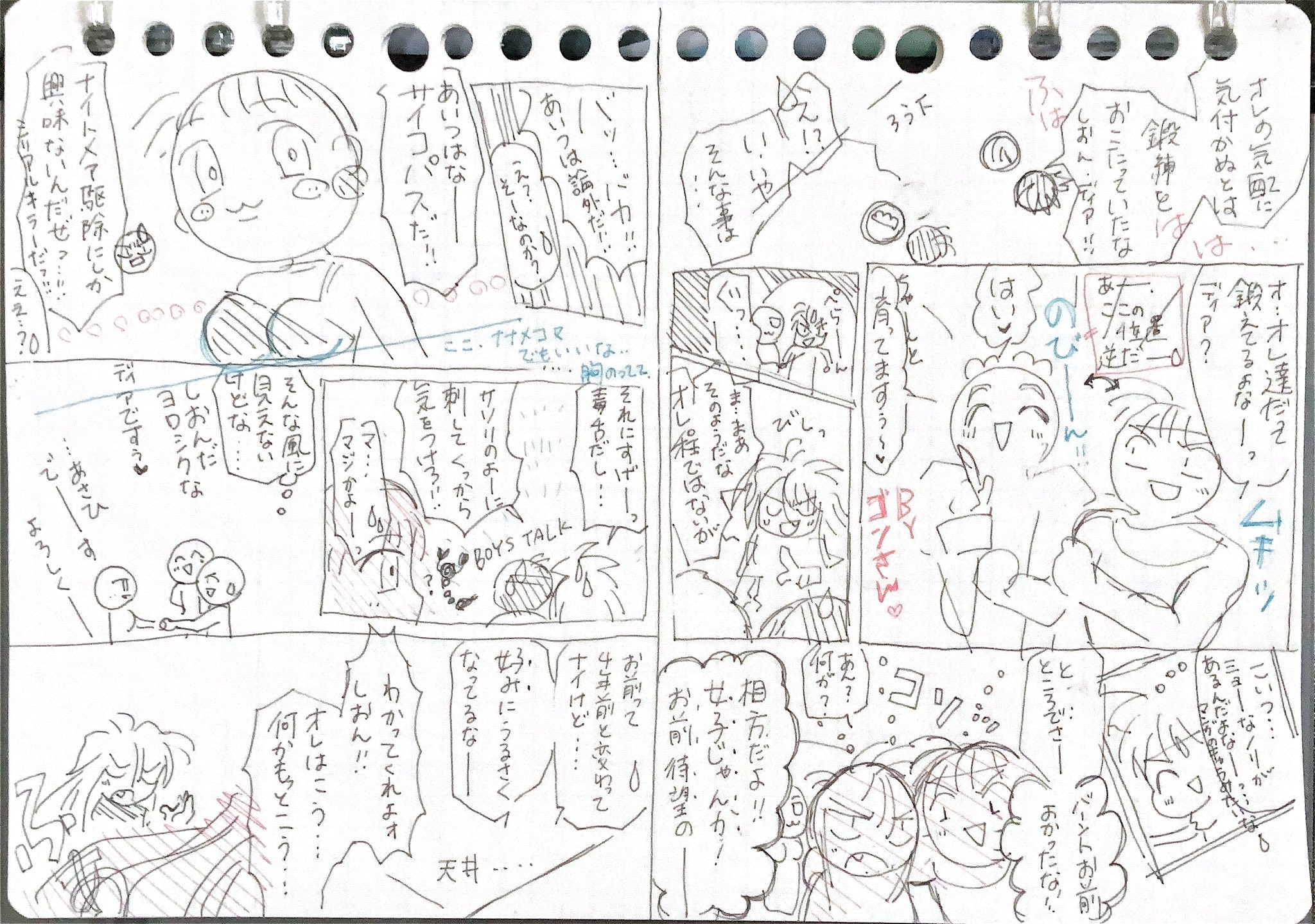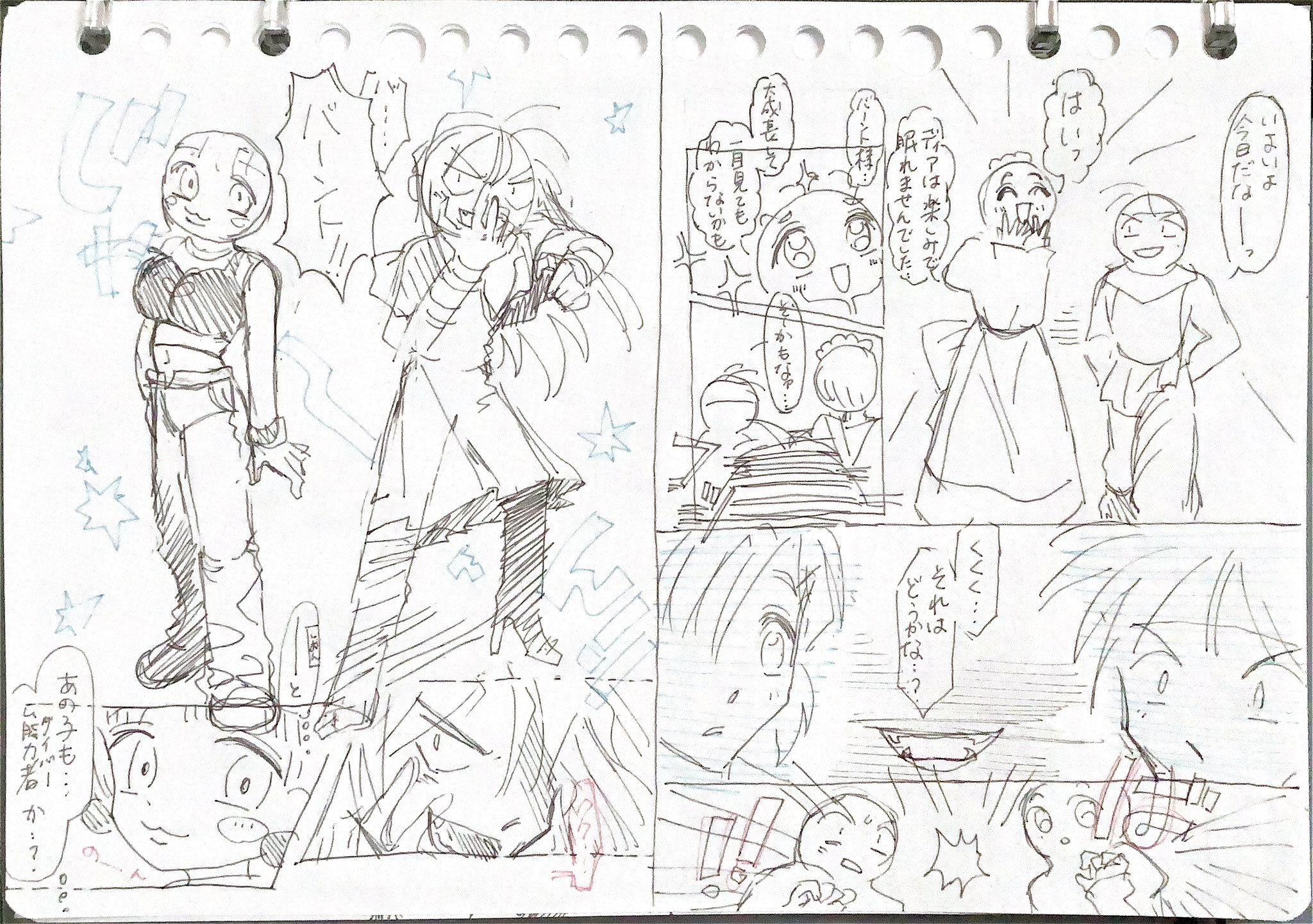 ネタ帳に殴り書きしたネームやラフで恐縮ですが、細かいところまで見ていただけて本当にうれしいです!