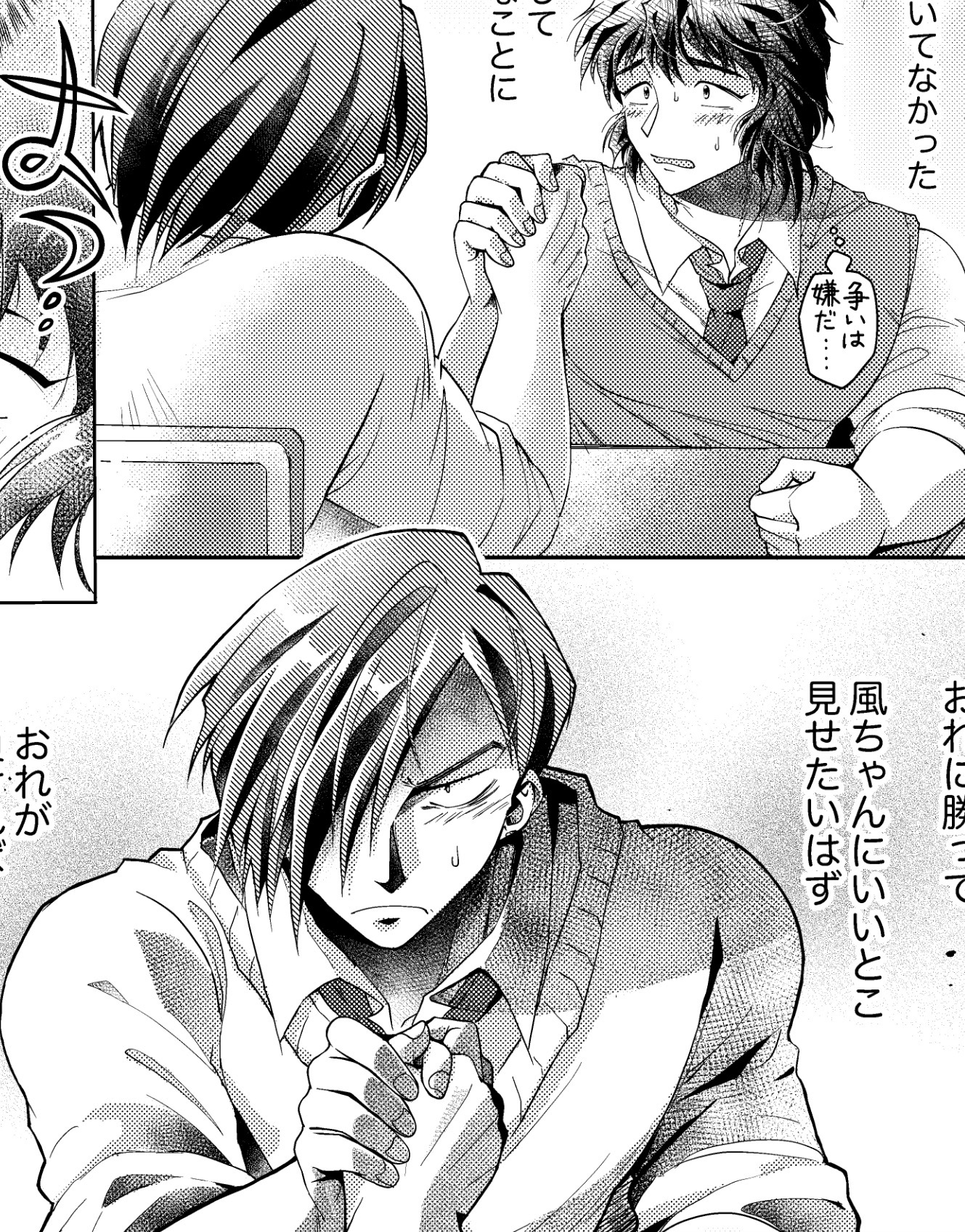 ②雨下vsツグの腕相撲、もーー本当に悲しい&恥なのですが😭、手の握り方が間違ってた!!ので、頑張って描き直し中です!#ないんちゃん