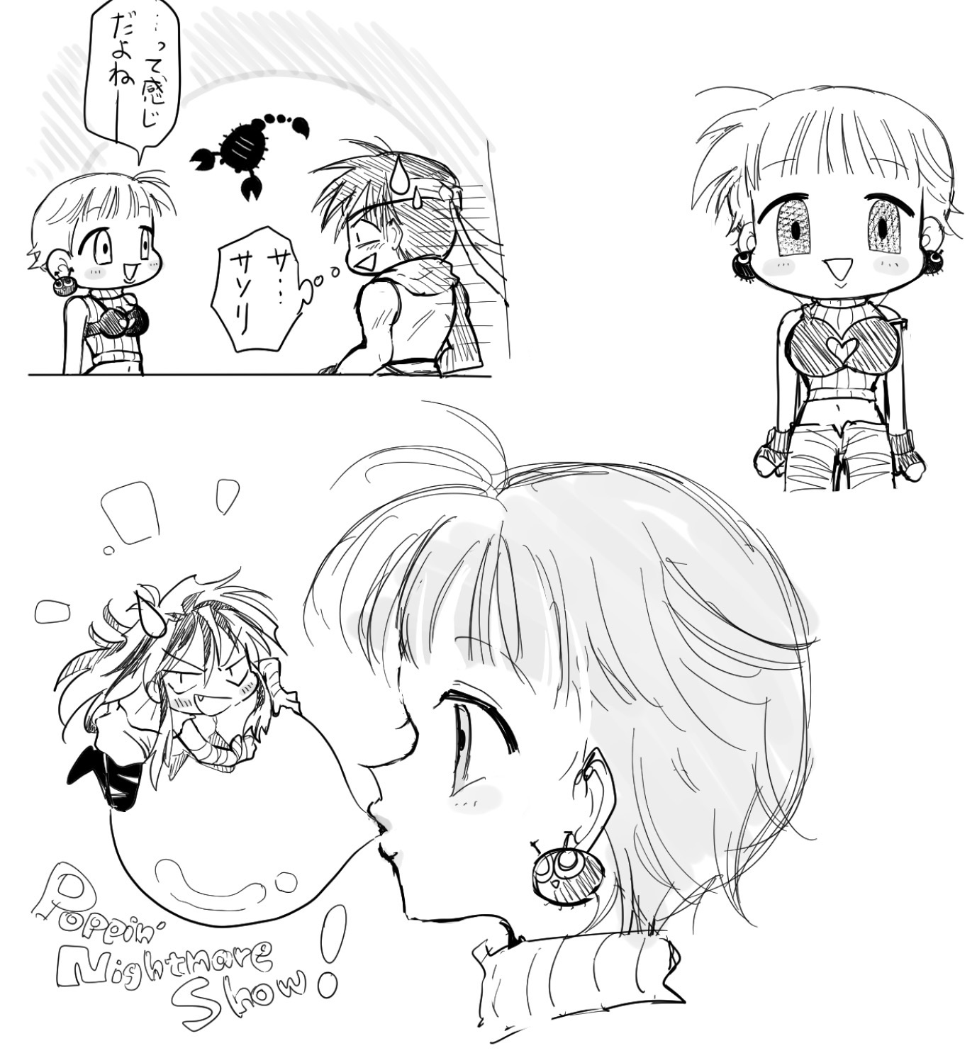 #ポッピン・ナイトメア・ショー 漫画の息抜きにらくがき(ラフ)。