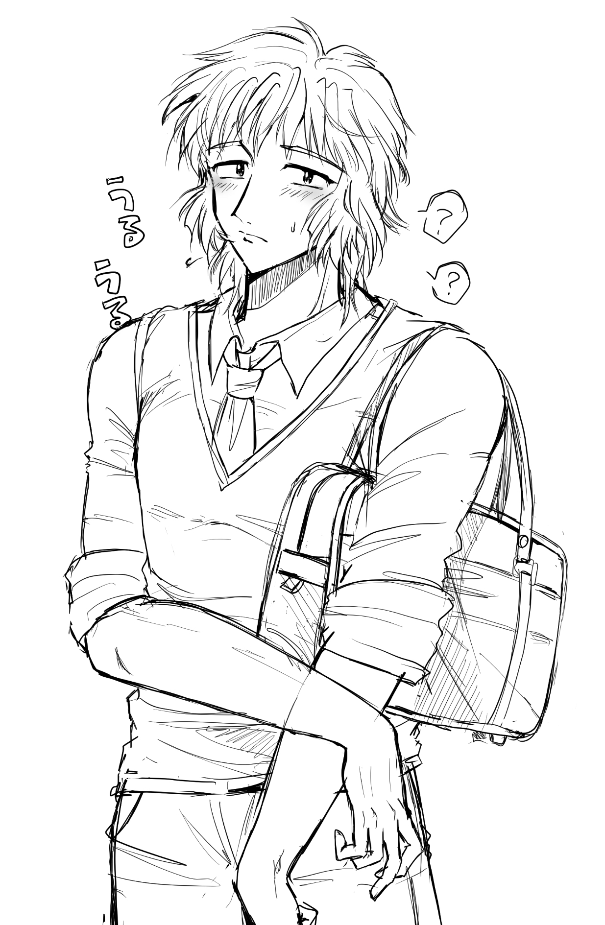 雨下から見て「こいつ(造)、桃木が惚れる程度にはイケメンかもな…?」って思うというシーンなので、説得力を出すために頑張って格好よく描かないといけないんですが、イケメンを描く技量が足りてないので「これは…どうなんだ…?」って思いながら描いてます。